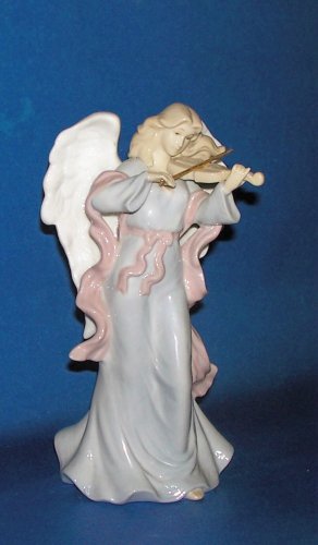 Porcelain Angel Figure Playing Violin, this underglazed, porcelain, angel, dressed in blue, is the essence of tranquility. 5 1/2" x 10" high.A beautiful keepsake, this porcelain angel figurine makes an especially thoughtful gift. The intricate details of this exquisite sculpture will delight any recipient Read more...