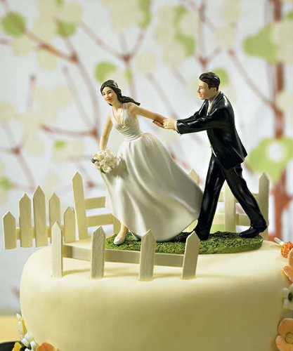 Jumping at the gate to start your life together? Celebrate your love with this clever cake topper - ready, set, GO. Hand painted porcelain. Presently the Bride and Groom Cake Toppers are available with skin tones and hair colors only as shown. Read more...