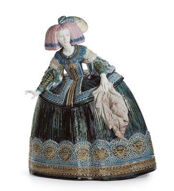Lladro Porcelain Figurine La MeninaThe Spanish Golden Age was an era of serene and stately expression symbolized by the artist Velazquez in his luxurious and celebrated work "Las Meninas", a term originating from Portuguese and meaning maids of honour in service of the queen or princesses. The sumptuous style of the period is perfectly caught in this Lladr�³ piece, which combines the subtle qualities of porcelain with the rich textures and intense colouring of glazes, a truly innovative blend of decorative excellence. Read more...