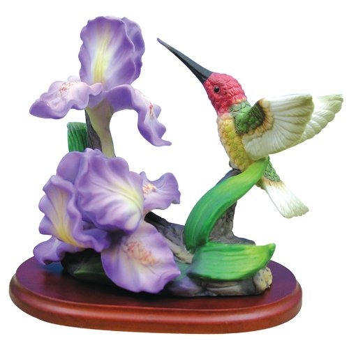 Hummingbird Figurine Porcelain with Iris Flowers on Wood Base Review